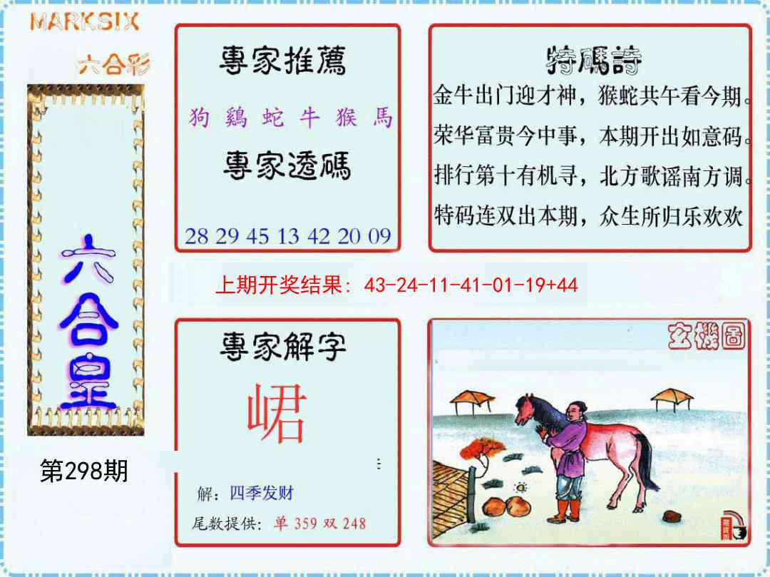 298期: 澳门六合皇彩圖信封【特码诗句】每期自动更新