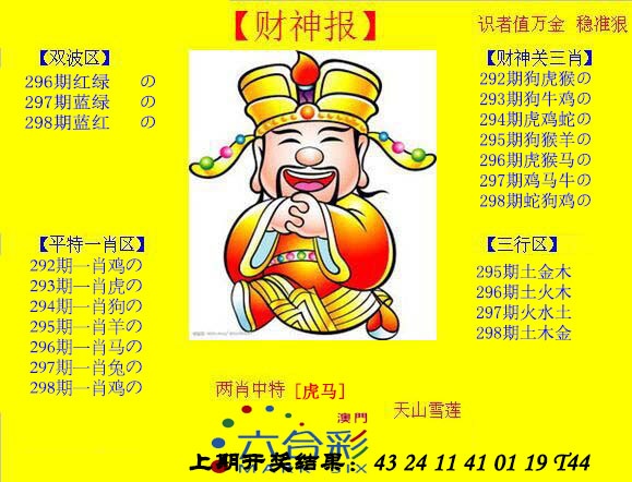 298期:澳门六合皇彩圖信封【黄财神报】每期自动更新